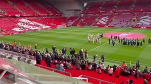 賽前,克洛普走進(jìn)安菲爾德場地內(nèi),全場爆發(fā)出雷鳴般的歡呼聲。