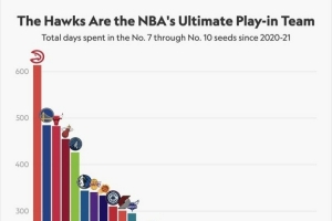 此圖統(tǒng)計了各隊處在附加賽區(qū)的總時間