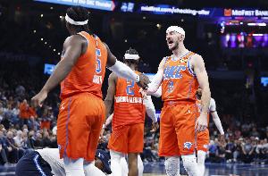 亞歷山大:“總得有個平衡。在第四節(jié)的最后一攻,我迎著兩個人投籃,僅僅是因為我感覺很好。所以這里總有個平衡。但我就是信任我的隊友,我每天都能看到他們的努力,我看到了他們在籃球場上的能力。我看到了他們打得多努力,有多拼,我看到了他們做出的所有不被注意的微小貢獻。當他們處于那些時刻,并且準備好去迎接那些時刻時,他們配得上這些機會。歸根結底,如果他處于空位,他就會去投,就好像他之前連進了10個一樣。這就是我欣賞卡魯索的地方。每一次他得到投籃機會,他都會給自己一個進球的機會。他已經(jīng)證明了這一點,他可能投丟了前幾個,但今晚他投進了一個關鍵球。在去年的季后賽中,他投進了無數(shù)個關鍵球。他證明了他配得上這些時刻,他享受這些時刻,并帶著十足的信心去迎接它們。所以他今晚投進這一球,我一點也不驚訝?!?/p>