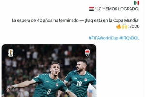 伊拉克時隔40年重返世界杯,伊拉克隊官方社媒用阿拉伯語、英語、西班牙語寫道:“我們做到了,40年的等待結(jié)束,伊拉克晉級2026年世界杯!”
