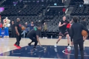 體育資訊4月1日訊 NBA常規(guī)賽,開(kāi)拓者卡位戰(zhàn)客場(chǎng)114-104擊敗快船。賽前有鏡頭捕捉到楊瀚森在熱身時(shí)撞倒了黑人助教。