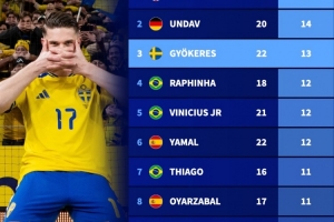 體育資訊4月2日訊 世預(yù)賽附加賽決賽,約克雷斯打進(jìn)絕殺球幫助瑞典拿到世界杯入場(chǎng)券。進(jìn)入2026年,約克雷斯在俱樂(lè)部和國(guó)家隊(duì)已經(jīng)打進(jìn)13球,位居五大聯(lián)賽所有球員第3位。