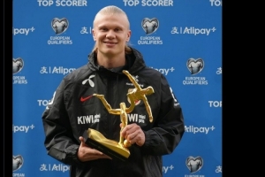 哈蘭德本屆歐洲世預(yù)賽打進(jìn)16球,榮膺最佳射手,他在社交媒體上曬出手拿獎(jiǎng)杯的照片,慶祝自己獲得這一獎(jiǎng)項(xiàng)。