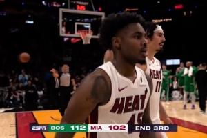 體育資訊4月2日訊 NBA常規(guī)賽,熱火三節(jié)打完102-112落后凱爾特人。