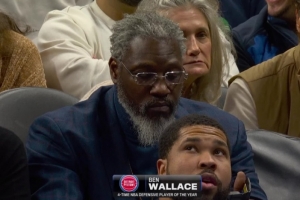 比賽期間,鏡頭捕捉到活塞名宿“大本鐘”本·華萊士來到現(xiàn)場。雖然須發(fā)皆白,但威嚴強硬的氣勢仍在。