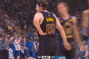 據(jù)湖人隊記Dave McMenamin報道,里夫斯在暫停結(jié)束后直接回到更衣室接受檢查。
