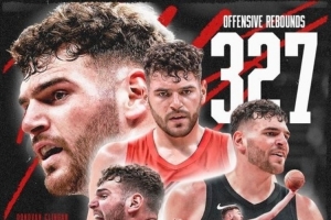賽季至今,他搶到327個(gè)進(jìn)攻籃板,創(chuàng)隊(duì)史單賽季進(jìn)攻籃板新紀(jì)錄。