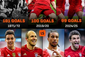 拜仁隊史單賽季德甲進球數(shù)紀錄是1971-72賽季,那個賽季德甲豪門打進了101球,2019-20賽季,他們打進100球險些追平該紀錄。在聯(lián)賽還是7輪的情況下,拜仁只需打進5球就可創(chuàng)造新的紀錄。