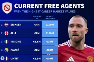 全文摘要:《轉(zhuǎn)會(huì)市場(chǎng)》公布了夏窗關(guān)閉后自由身球員的歷史身價(jià)榜。埃里克森與阿里以1億歐元的生涯最高身價(jià)并列榜首,因西涅、皮亞尼奇等昔日名將也榜上有名。這份榜單反映了這些球星職業(yè)生涯的巔峰與現(xiàn)狀。