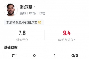 體育資訊4月4日訊 足總杯1/4決賽,曼城主場(chǎng)迎戰(zhàn)利物浦,謝爾基首發(fā)出戰(zhàn),貢獻(xiàn)1次助攻,還有3次過(guò)人成功和2次關(guān)鍵傳球,評(píng)分7.6。