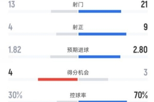 全場(chǎng)比賽數(shù)據(jù)如下: