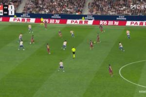 西甲第30輪,十人馬競(jìng)主場(chǎng)1-2遭巴薩逆轉(zhuǎn)絕殺。比賽第70分鐘,巴薩前場(chǎng)配合,費(fèi)蘭一腳出球,奧爾莫前插的同時(shí)順勢(shì)腳后跟挑球過(guò)人殺入馬競(jìng)禁區(qū),吸引馬競(jìng)多人防守后將球送到中路,費(fèi)蘭插上掃射被穆索撲出,一次極好的機(jī)會(huì)!