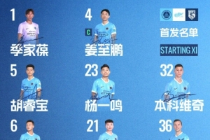 2-田逸梵 8-周定洋 12-張曉彬 13-彭鵬(GK) 14-李龍 15-于睿 17-李寧 20-玄智健 34-夏合扎提·吾加合買(mǎi)提 46-申桓銘 54-姚俊毅 56-王昱衡