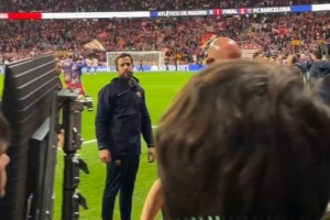 巴薩中場(chǎng)加維此役替補(bǔ)出場(chǎng),賽后他將自己的球衣送給場(chǎng)邊的一位女球迷,后者歡呼雀躍。