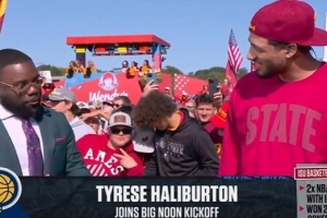 哈利伯頓則打趣回應(yīng):“讓他們也幫我找一個!”