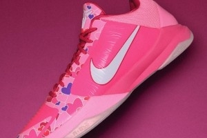 這雙Kobe 5 PE “Jordyn”顧名思義,靈感來(lái)源于他的女兒Jordyn,而配色和愛(ài)心圖案則是取自他女兒的一件衣服圖案,球鞋的后跟還有女兒的出生日期。