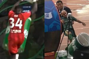 而在2023年中超有過幾乎一樣的案例,2023年6月29日,中超第13輪,上海海港客場2-1擊敗北京國安,比賽第57分鐘,上海海港外援伊薩·卡隆在被替換下場后,用腳踢壞替補(bǔ)席旁的冰桶。之后中國足協(xié)開出罰單,卡隆被停賽1場、罰款人民幣1萬元。