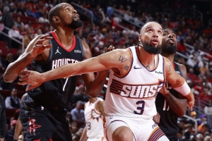 目前,火箭49勝29負(fù)西部第五,太陽43勝35負(fù)西部第七。