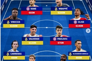 全文摘要:本文報道了歐冠1/4決賽皇馬對陣拜仁的比賽。德國轉(zhuǎn)會市場列出了雙方合并陣容的總身價高達10.3億歐元。其中,姆巴佩以2億歐身價成為最貴球員,維尼修斯(1.5億歐)和奧利塞(1.4億歐)緊隨其后。