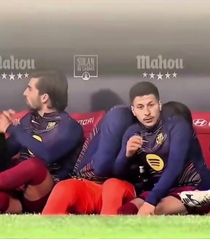 體育資訊04月07日訊 西甲第30輪,巴薩2-1擊敗馬競的比賽中,有攝像頭拍到了替補(bǔ)席上的什琴斯尼讓小將巴德吉打掩護(hù),自己側(cè)過身去吃了點(diǎn)什么東西。
