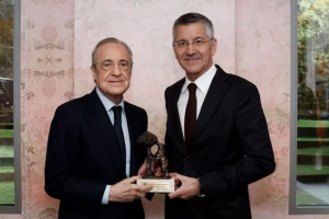 體育資訊4月7日訊 皇馬將在本輪歐冠八強(qiáng)戰(zhàn)首回合主場(chǎng)迎戰(zhàn)拜仁,皇馬官方也曬出了兩家俱樂部主席的合照。