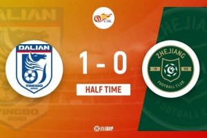 體育資訊4月10日訊 中超第5輪,大連英博主場(chǎng)對(duì)戰(zhàn)浙江隊(duì),半場(chǎng)結(jié)束英博1-0領(lǐng)先。