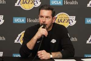 JJ·雷迪克:“我想說,我為我們的球隊感到無比驕傲,為我們的球員和教練組在這個漫長的NBA賽季中所展現(xiàn)出的應對能力而自豪。我覺得,每個賽季可能只有那么一兩支球隊沒有經歷太多起伏,他們的賽季軌跡像過山車一樣平穩(wěn)。但對于絕大多數(shù)NBA球隊來說,從失敗中觸底反彈的能力,才是決定你整個賽季成色幾何的關鍵。你期望能贏下50場以上的比賽,期望能獲得季后賽首輪的主場優(yōu)勢,成為上半?yún)^(qū)的種子球隊。我知道,賽季初在座的各位沒人看好我們能進前四,這就是現(xiàn)實,多數(shù)人都覺得我們頂多是支附加賽級別的隊伍,甚至更糟。所以,我們不僅要承載外界對湖人這支球隊的期望,還要消化每一次輸球后自然伴隨而來的負面情緒。我覺得我們的團隊在這方面應對得非常出色?!?/p>