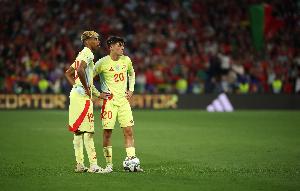在巴薩的首發(fā)陣容中,除了阿勞霍外,其他10名球員均為西班牙人,而且?guī)缀醵际俏靼嘌绹_,他們分別是霍安·加西亞、庫巴西、赫拉德·馬丁、巴爾德、埃里克·加西亞、佩德里、加維、費爾明、亞馬爾以及費蘭·托雷斯。