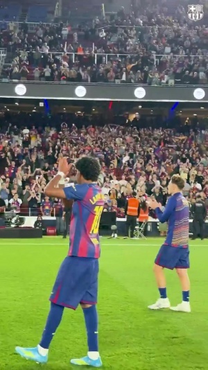 體育資訊04月12日訊 加泰德比,巴薩4-1戰(zhàn)勝西班牙人。巴薩球員賽后謝場(chǎng),全場(chǎng)球迷6萬(wàn)多球迷高喊“是的,我們可以”,鼓勵(lì)球隊(duì)逆轉(zhuǎn)馬競(jìng)。