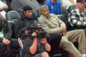 心情不錯(cuò)!德羅贊和威少開(kāi)拓者主場(chǎng)觀戰(zhàn)耐克峰會(huì) 兩人有說(shuō)有笑