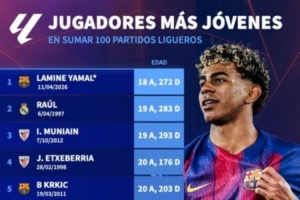 西甲出戰(zhàn)100場(chǎng)最年輕球員榜:亞馬爾居首,勞爾、穆尼亞因前三