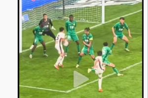 楊天嬰表示:球迷視頻角度,這球就是打在廖力生離開身體的手臂上,然后改變方向進(jìn)球的。