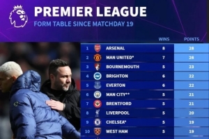 德轉(zhuǎn)統(tǒng)計了同期(自第19輪以來)英超各隊的積分情況,熱刺是唯一沒有取勝過的球隊,而且球隊同期積分排在英超20支球隊的最后一位。