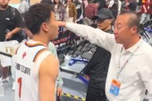 比賽結(jié)束后,場(chǎng)邊發(fā)生了一個(gè)小插曲,上海男籃球員李添榮想和場(chǎng)邊的球迷擊掌互動(dòng),但是遭到北京主場(chǎng)工作人員的攔截。