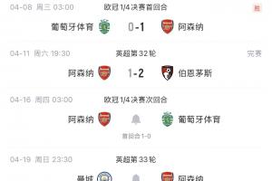 歐冠1/4決賽,阿森納客場1-0戰(zhàn)勝葡萄牙體育;英超方面首回合交手,阿森納1-1戰(zhàn)平曼城!