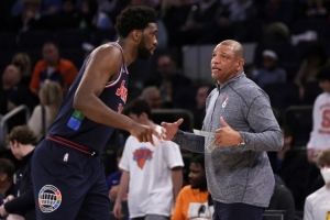 談到昔日弟子恩比德因為闌尾炎接受手術一事,里弗斯表示:“搞什么鬼?闌尾炎?這種事簡直是編都編不出來的。真的,你根本編不出來。當我還在執(zhí)教這里時,我們?yōu)榇_保他的健康已竭盡全力。而且我知道現(xiàn)主帥納斯也采取了同樣的措施,因為我們之間經(jīng)常交流?!?/p>