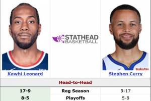 據(jù)統(tǒng)計(jì),倫納德常規(guī)賽對陣庫里17勝9負(fù),季后賽8勝5負(fù)。