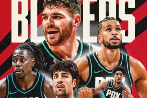 賽后,開拓者發(fā)布本場比賽海報,阿夫迪亞、霍勒迪、克林根、亨德森和卡馬拉5人入鏡。