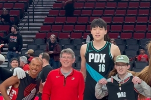 賽后,作為球隊常規(guī)賽收官戰(zhàn)的保留節(jié)目,開拓者球員為部分季票球迷送上簽名球衣,楊瀚森把自己的球衣送給了一位從1971年就開始支持球隊的老球迷。
