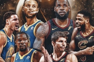 2018年總決賽宣傳海報(bào)中,勇士是杜庫(kù)湯,騎士則是詹姆斯、TT和科沃爾。