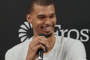 本賽季,文班攻防兩端表現(xiàn)高效且極具統(tǒng)治力,他出戰(zhàn)64場,場均可以得到25分11.5籃板3.1助攻1搶斷。他場均可以送出3.1記蓋帽,榮膺本賽季聯(lián)盟蓋帽王(季中錦標(biāo)賽決賽不算常規(guī)賽出場次數(shù),但計(jì)入65場評獎資格)。