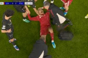 體育資訊04月15日訊 歐冠8強(qiáng)次回合利物浦vs巴黎,?;倏说?9分鐘無(wú)對(duì)抗受傷,被擔(dān)架抬出場(chǎng)。薩拉赫登場(chǎng)!
