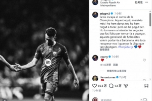 埃里克·加西亞社媒寫道:“歐冠夢想與我們擦肩而過,這支球隊值得擁有更多,我們已經拼盡全力,一度觸手可及,但最終未能如愿?!?/p>
