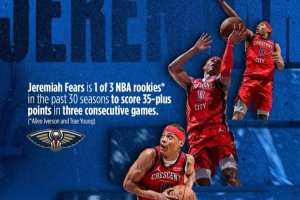 他也成為了過去30個賽季中,NBA僅有的三位新秀之一,能夠在連續(xù)三場比賽中每場砍下35+分。另外兩位是艾弗森和特雷·楊。