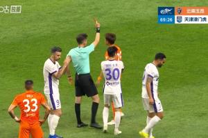 體育資訊04月17日訊 中超第6輪,云南玉昆vs天津津門虎,比賽第70分鐘,張宸梁身后拉倒謝蒂內(nèi),兩黃變一紅被罰下,玉昆0-2+少一人作戰(zhàn)!VAR介入檢查是否構(gòu)成直紅,最后維持黃牌判罰。