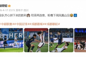 體育資訊4月17日訊 中超聯(lián)賽第6輪,成都蓉城客場1-0擊敗武漢三鎮(zhèn),繼續(xù)領(lǐng)跑積分榜。