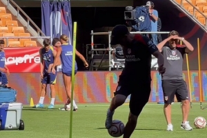 馬競正在備戰(zhàn)這場決賽,馬競主帥西蒙尼在賽前的訓(xùn)練中顛球,展現(xiàn)了自己的嫻熟腳法。