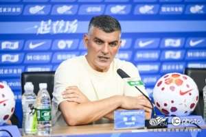 4月17日,成都蓉城主教練約翰·阿洛伊西出席賽后新聞發(fā)布會(huì)。
