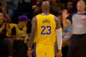 GIF-詹姆斯背打強碾得分向裁判泰勒·福特抱怨 后者攤手