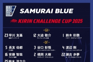 門(mén)將:23-早川友基(鹿島鹿角)、12-大迫敬介(廣島三箭)、1-鈴木彩艷(帕爾馬)